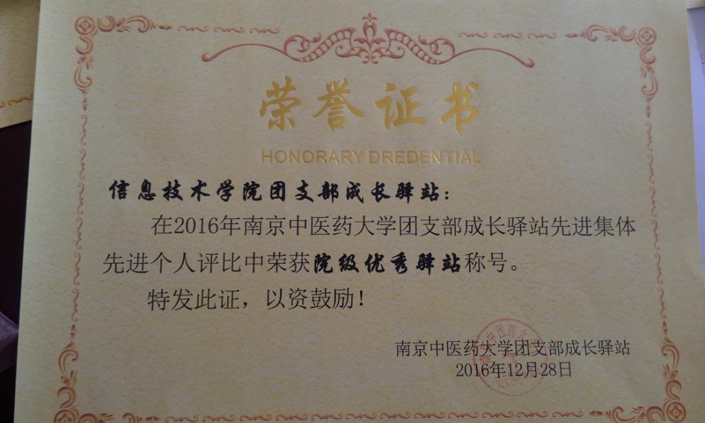 信息技术公司团支部成长驿站在2016年校团支部成长驿站先进集体先进个人评比中荣获“院级优秀驿站”称号;14计算机团支部喜获活力团支部称号。希望获奖的团支部能再接再厉,再创佳绩,其他团支部也要积极向获奖团支部学习,争取更大的进步。