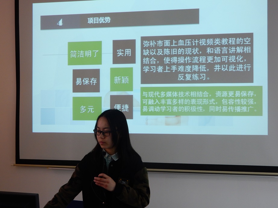 本次大赛由现场作品展示与答辩两部分组成,各参赛团队依次着正装上场,通过PPT向大家展示他们的项目背景和开发技术,并同时演示项目成果,最后评审老师提出2-3个问题,项目组成员现场答辩。