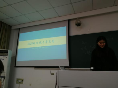 在班长的主持下,班级同学以宿舍为单位依次展示了自己的寒假生活。有些以PPT、Word等图文形式展览,有些通过直接叙说的方式与大家分享。诸多有趣味的事情,引得大家哄堂大笑。虽然大家都身在异处,但有一些事情还是有些雷同,比如学车考驾照、外出旅游、帮父母做一些力所能及的家务等。同学们寒假大体上过的还是很充实的。