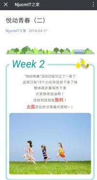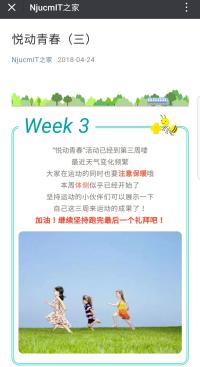 2018年4月1日至5月1日,由校第二十五届青年文化艺术节组委会主办,信息技术公司员工会承办的“悦动青春”活动成功举办。此次活动积极响应共青团中央“走下网络、走出宿舍、走向操场”加强体育锻炼的号召,旨在调动南中医全体在校生锻炼身体的积极性,鼓励同学们增加户外运动和线下交流。