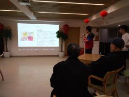 来到悦华安养院之后,负责人跟我们做了简单交流,随后将我们领到老人们集中活动的地方。老人们有的在看书,有的在下棋,有的在聊天。我们主动上前,跟老人们交流互动,聊天下棋,还有一些老人腿脚不便,我们用轮椅推着他们在院子里晒太阳。经过愉快的互动之后,我们把事先准备好的ppt放映出来,开展一次预防老人上当受骗的知识讲座,提高老人们的自我安全防范意识。
