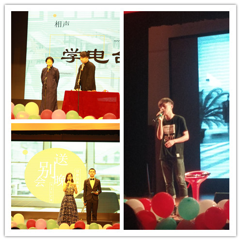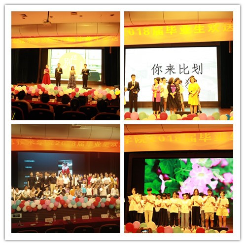 晚上六时三十分,2018届毕业生欢送会正式拉开帷幕17计科带来的开场舞see you again动感十足15软件《青春校园》以诙谐幽默的喜剧演绎了校园内的青春故事;年少如你,15计科的《牧马城市》唱出了毕业生离开公司进入社会的迷惘;《裙带关系》中帅气的男主角让人印象深刻。青春如诗117乐队在毕业生的热情回应中带来了《春风十里》、《光辉岁月》两首歌曲;岁月如歌,16软件《光阴的故事》的朗诵+合唱、15计嵌的改编歌曲《南中医的日子》带领毕业生回顾四年青春岁月;16计嵌班的《太想爱你》将欢乐感动一并带给观众。最后14软件张晓成的一首《再见》为欢送会画上了圆满的句点。