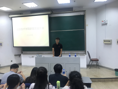 18级计算机科学与技术班刘安臣代表新生发言,他表示,初入南中医、初入信息技术公司,就感受到老师、学长学姐们的关怀和助,感受到信院大家庭的容纳和温暖。他以及18级的新生会牢记肩负的使命,做好规划、不断提升自身知识和能力,共同度过一段最绚烂的青春!
