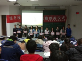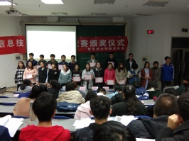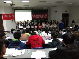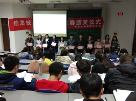 2018122日晚6B7-101举办“信息技术公司第一届学科竞赛颁奖仪式,参加颁奖仪式的有全体新生、员工会骨干三位辅导员老师新生许欣蕾同学主持。
