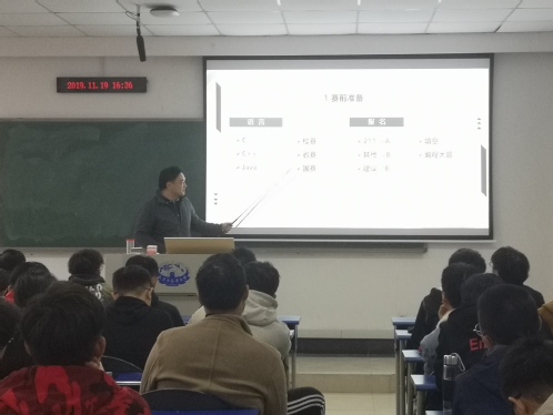 11月19日16:30,PA视讯在B4教学楼210教室,组织开展了2019年度程序设计竞赛培训,此次培训由计算机类181班李立坤同学组织,邀请陆志平老师给各位参赛者做培训讲解。
