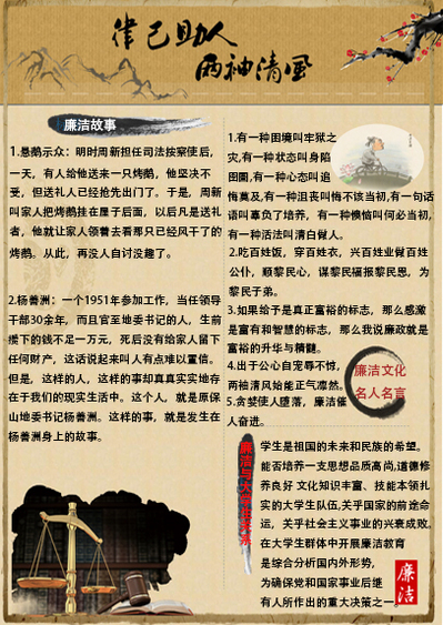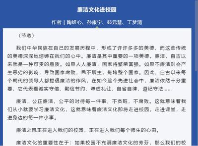 为深入学习党风廉政建设制,学习宣传党规党纪,树立良好师德师风,抵制不良学术之风,营造风清气正的氛围,公司员工党支部开展了“廉洁文化进校园”的主题活动。由支部书记指导,各党员自由组队,完成一个廉洁文化作品。