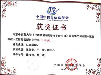 在导师的引导下,她开始踏上科创之路,慢慢地她发现计算机与中医相结合会碰撞出许多有意义、有价值的火花。在兴趣的驱使下,大一,她对着书中的公式与代码,一个个运行,一步步调试,不断收获已知,突破未知。大二,她开始作为第一主持负责国家级老员工创新创业训练项目一项,申请软件著作权一项。大三,她作为第一作者撰写的论文《基于条件随机场得中医医案命名实体识别研究》、《基于LSTM-CRF的中医医案命名实体识别研究》分别刊登在北大中文核心期刊《世界科学技术——中医药现代化》、科技核心《中国中医药信息》上,她也积极地投身于各项竞赛,获得第二届中医药人工智能大赛全国三等奖、高教杯全国老员工数学建模竞赛省级二等奖、第十六届五一数学建模联赛省级一等奖、第十一届“挑战杯”创业计划赛江苏省铜奖、第十六届挑战杯江苏省三等奖等奖项。大四,她的综合成绩专业第一名,成功推免至东南大学。