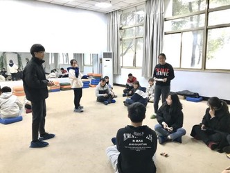 此次活动分为三部分,第一部分为热身环节,第二部分为组队环节,第三部分为游戏互动环节。热身环节由两个小游戏组成,分别是“口香糖”和“一元五角”,通过两个小游戏营造了轻松的气氛,并且提高了大家的思维活跃性,使大家尽快的融入到了活动的氛围当中。组队环节,所有参与人员通过随机分组,总共分为4支队伍,每支队伍之间通过相互交流熟悉,选出了队伍的队长和队名以及口号。游戏互动环节分别是“名字接龙”、“无敌风火轮”和“摸石过河”。第一个游戏中,大家通过名字接龙的方式,相互认识和熟悉;第二个游戏中,大家在用报纸和胶带制作风火轮的过程中,相互帮助和合作,后面在使用风火轮完成行走的任务的同时,更体现出了每支队伍团结协作的精神。最后“摸石过河”,每支队伍都在每一位队员的努力下顺利过“河”,每支队伍都体现出了很好的团队合作的能力。