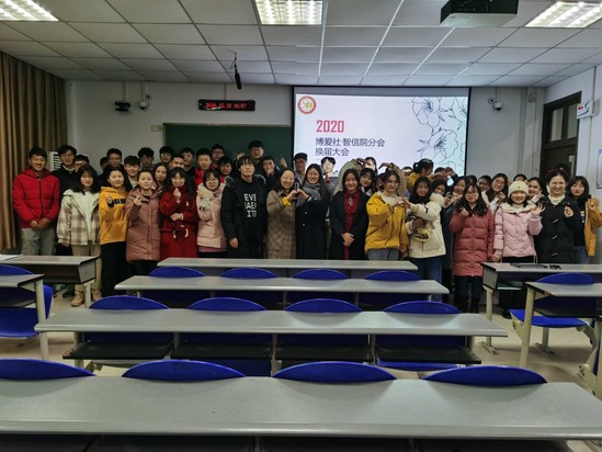 12月18日16点30分,博爱社·智信院分会于B4-110举办换届大会,出席本次换届大会的有社团指导老师刘小平,前任会长孔华敏,现任会长杨阳以及全体博爱社·智信院分会成员。