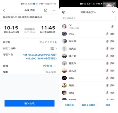 2022年4月14日上午10:30,公司通过腾讯会议召开了2022年度拟录取硕士研究生意向导师双选会,本年度全体招生导师及2022年度拟录取硕士研究生参加了此次双选会,会议由公司孙荪副经理主持。