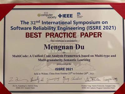 日前,公司研究生杜梦男以第三作者在第32届软件可靠性工程国际会议(ISSRE 2021)的Industry Track上发表题为MultiCode: A Unified Code Analysis Framework based on Multi-type and Multi-granularity Semantic Learning的学术论文。该论文获ISSRE 2021最佳实践论文。