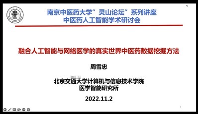 2022年11月2日晚上7:30,由PA视讯科学技术协会、中国中医药信息学会人工智能分会主办、PA视讯承办的PA视讯2022年度“灵山论坛”系列学术活动——中医药人工智能学术研讨会线上举办,特邀请北京交通大学医学智能研究所所长周雪忠教授为公司全体师生做题为“融合人工智能与网络医学的真实世界中医药数据挖掘方法”的学术报告。会议由公司经理胡孔法教授主持,公司全体教师、研究生及相关人员120多人参加了本次学术报告。