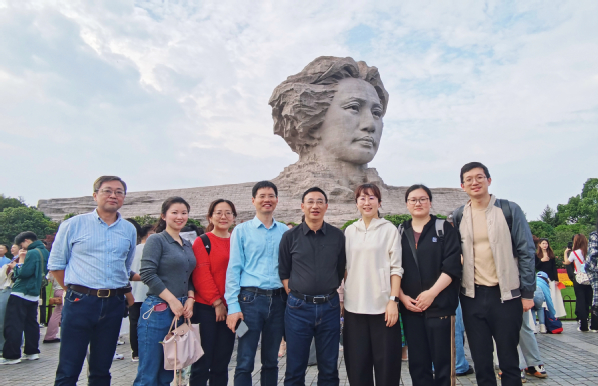 成员们首先抵达湖南红色教育基地——橘子洲,开展现场教学。1925年,32岁的毛泽东同志写下了《沁园春•长沙》,橘子洲头矗立的青年毛泽东艺术雕塑,再现了毛泽东当年胸怀大志、风华正茂的宏伟气概。成员们站在雕塑前,感受毛泽东同志“问苍茫大地,谁主沉浮”的雄心壮志与博大胸怀,敬仰其“以天下为己任、济世救民”的伟大担当与豪迈气概,一起重温青年毛泽东在这里所立下的豪情壮志。