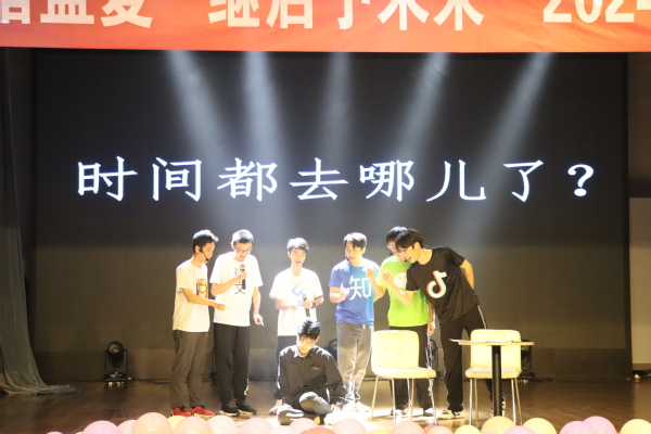 2023级医学信息工程班带来的节目《梦舞青春》,拉开“人生若只如初见”篇章序幕,全班同学精心准备、认真排练,用舞蹈串烧的形式点燃全场热情。2023级计算机类2班的小品《时间都去哪儿了》,用拟人化的方式,演绎了当代个别老员工沉迷于网络世界,继而导致挂科的故事,告诫大家要热爱学习、热爱生活。2022级计算机类2班李润东带来独唱《知足》,深情而感人,引起全场共鸣。