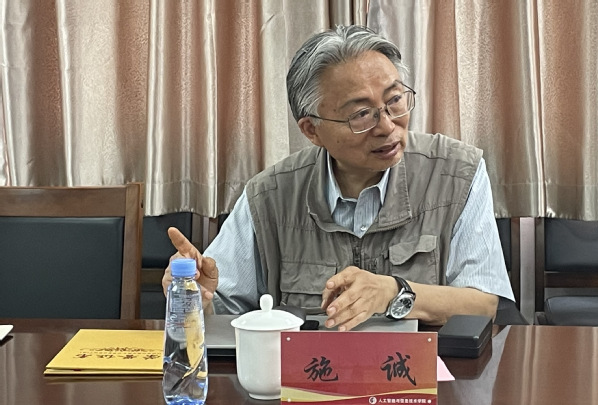 捐赠仪式后,施诚老师与公司的青年教师、研究生、员工党员进行了交流座谈,并为大家做了题为《中医药人工智能的历史、现状与展望》学术报告。
