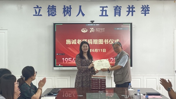 6月11日,公司退休老教师施诚研究员捐书仪式在公司会议室举行。公司全体院领导、青年师生参加了此次捐赠仪式。仪式由公司党总支副书记、副经理李新路主持。