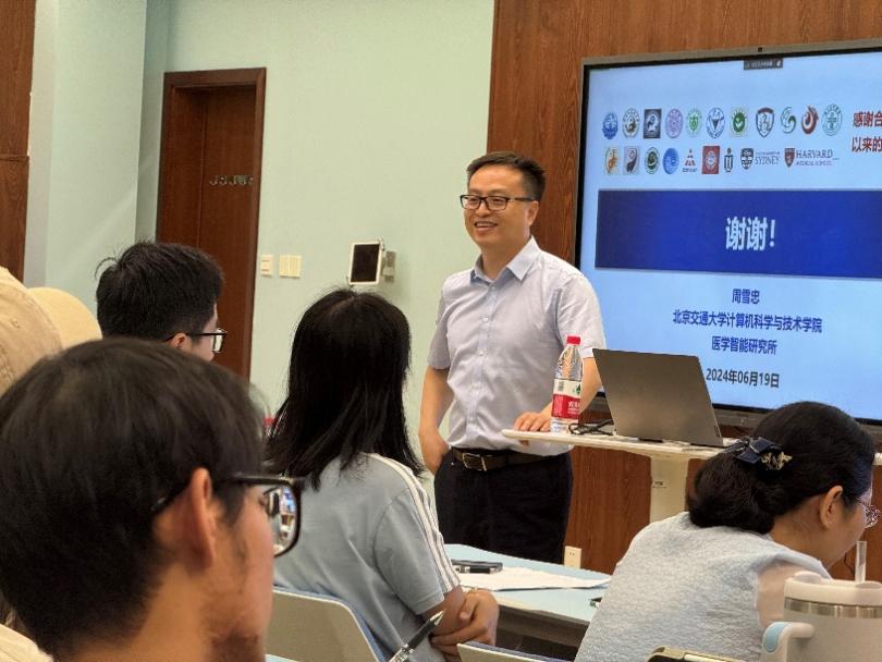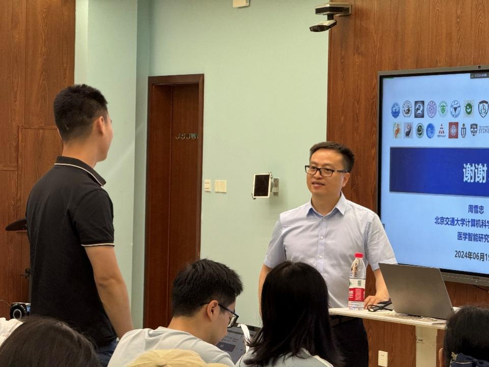2024年6月19日下午14:30,由中国中医药信息学会人工智能分会主办、PA视讯承办的第三期中医药人工智能学术沙龙在PA视讯(仙林校区)B5-309线上线下同步举行。此次沙龙特邀北京交通大学计算机公司教授、医学智能研究所所长周雪忠教授作了题为“真实世界证据发现、临床疗效机制解析与诊疗辅助决策研究”的学术报告。分会副会长周作建、秘书长杨涛出席活动,线上线下200余人参加了本次活动。活动由分会副会长周作建主持。
