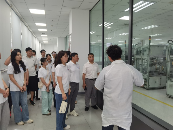 师生一行来到了习近平总书记考察的第二站——智能制造生产车间。所见之处,多条装置生产线正在全力以赴地开展生产。在企业人员的介绍中同学们了解了企业开展核心技术攻关,服务电网安全、电力保供和能源转型等情况,同学们感触良多,切身体悟到能源保障和安全事关国计民生,是须臾不可忽视的“国之大者”。