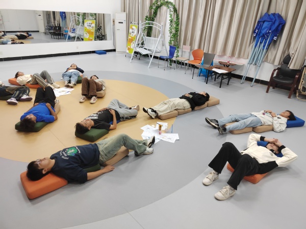 在热身破冰环节,师生共同开展拓展训练热身游戏——松鼠与大树,通过扮演不同角色、承担不同任务,锻炼反应能力,快速打破团队坚冰,营造团队氛围,凝聚团队合力。在压力测试环节,师生共同开展压力扫描测试,通过在身体扫描图上标注不舒适部位,评估压力对身体产生的影响。在压力疏导环节,师生共同分析面临的压力,进行组内分析讨论,运用头脑风暴,思考总结缓解压力的方法,再进行冥想放松训练,全程回顾总结本次辅导培训。参训本研员工表示,通过本次心理辅导培训,不仅让自己敞开心扉,诉说苦闷,直面压力,也让自己能够进一步认识自我,理好思绪,向着目标勇往直前、奔赴山海。